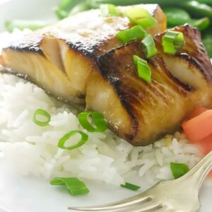 This is a delicious and easy entree that you can incorporate into your weeknight dinner menu. We served this black cod (sablefish) with jasmine rice and sautéed snap peas. This recipe is also suitable for a fancy Asian-style dinner party served with udon noodles and steamed baby bok choy.